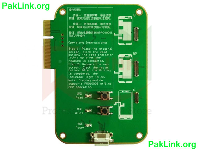Step 1: Place the original screen. Click the Read button. Read indicator will light up after reading is completed. Step 2: Replace it with the new screen. Click the Write button. Write indicator will light up after writing is completed.